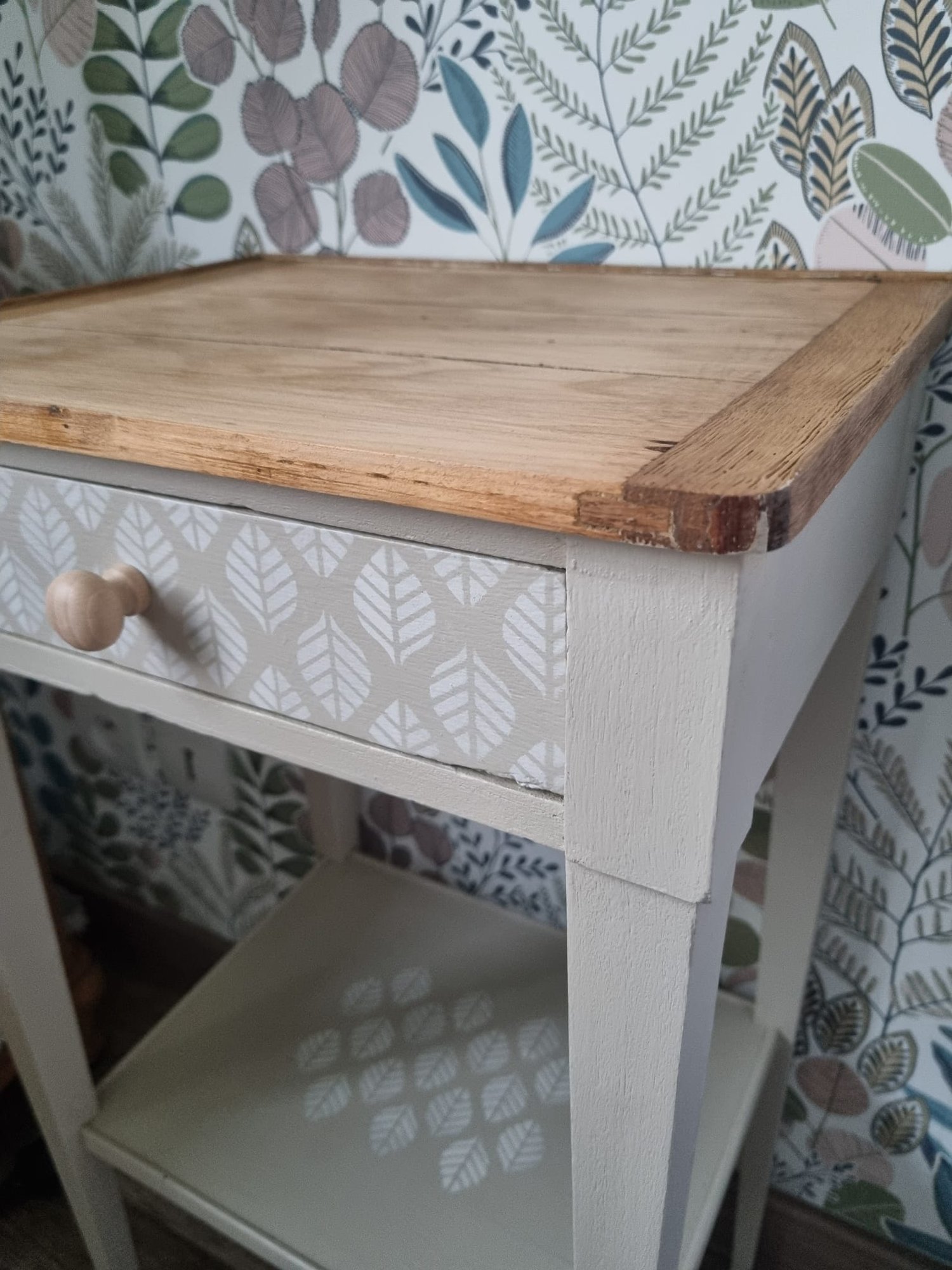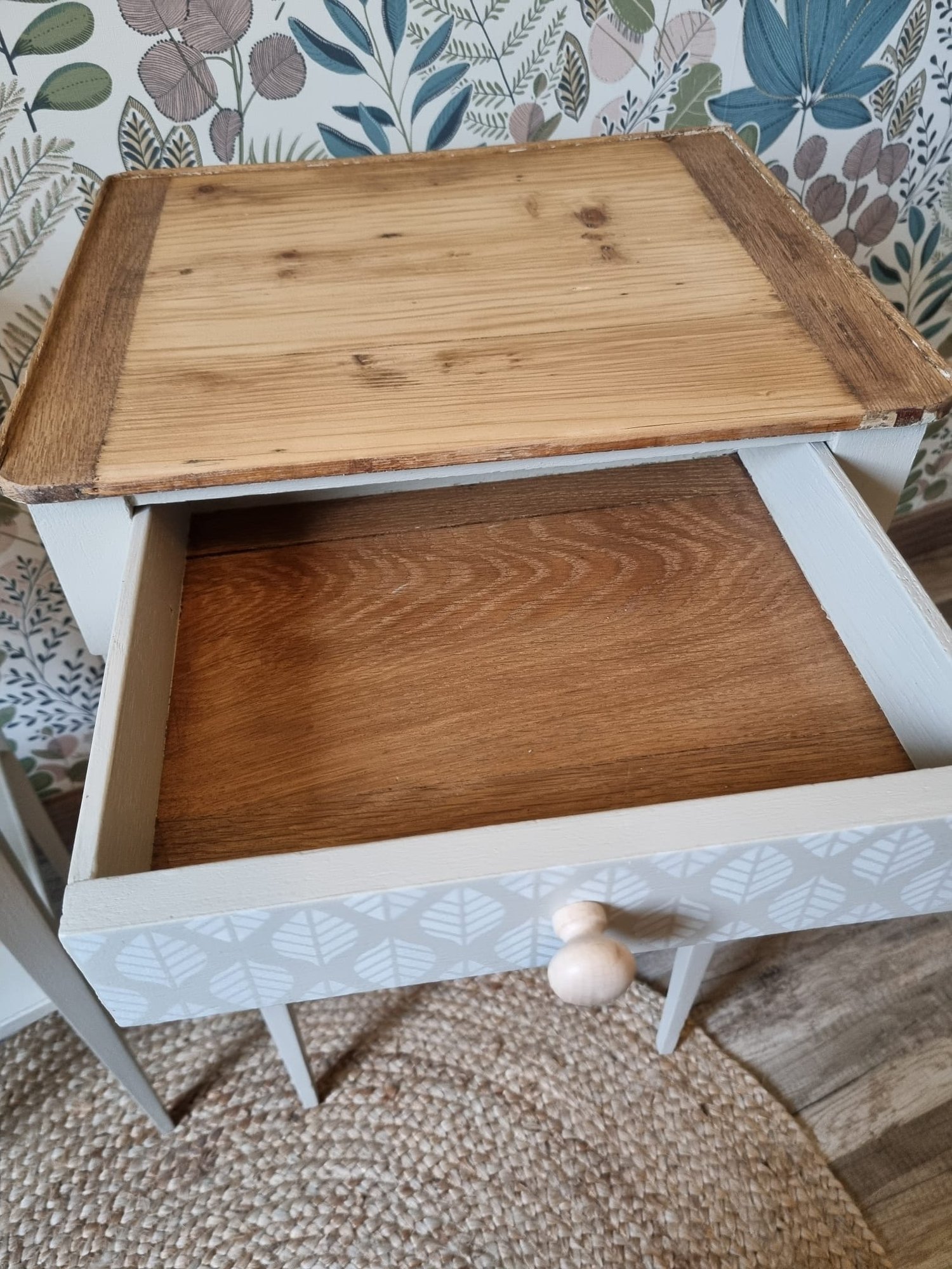 J'ai choisi de conserver le plateau du haut en bois brut, mettant en valeur ses imperfections naturelles.