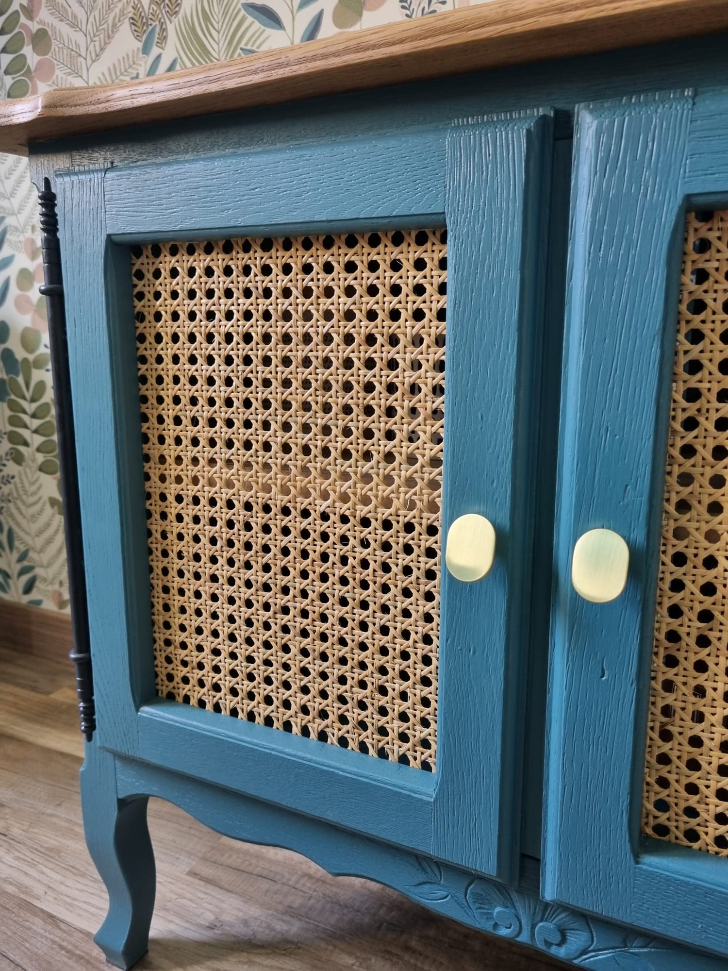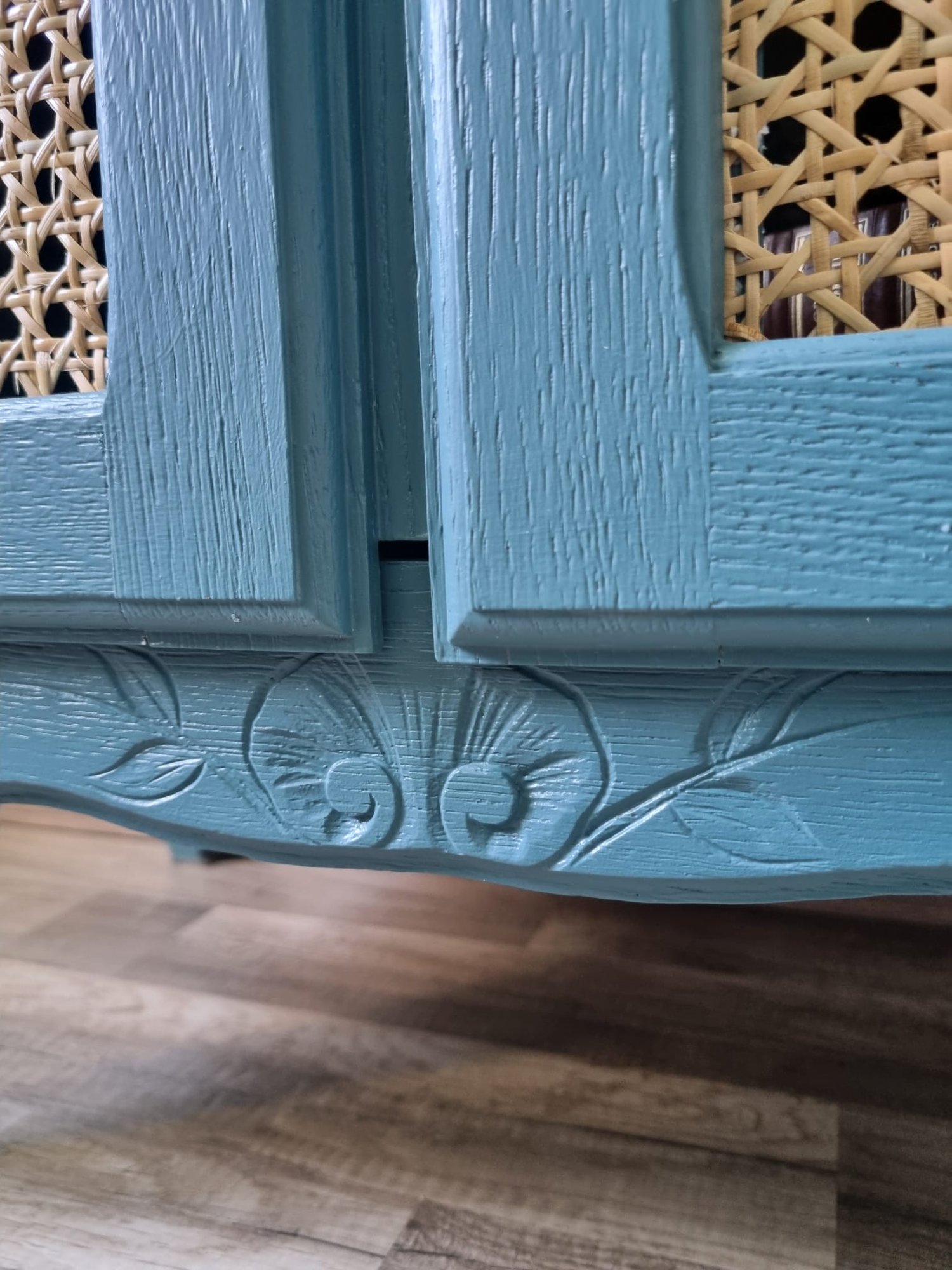 * Installation d’un cannage naturel en rotin sur les portes.
