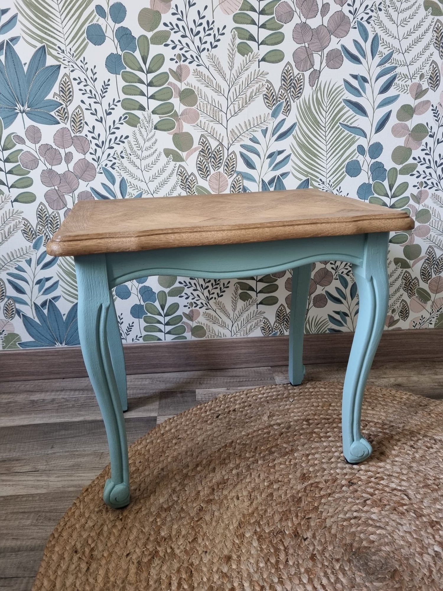 Petite Bleuet, cette toute petite table de salon ou bout de canapé sera parfaite entre deux fauteuils pour poser un thé, un café ou un livre.